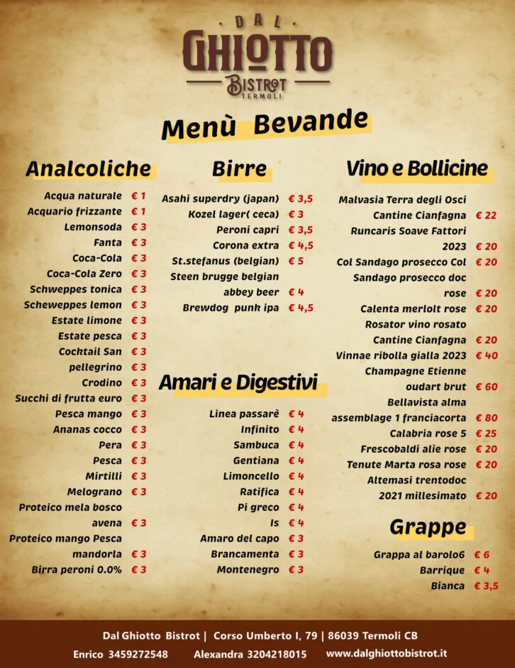 Che sia un pranzo leggero, un aperitivo vista mare o una cena speciale, troverai sempre la bevanda perfetta per accompagnare il tuo momento al Dal Ghiotto Bistrot.